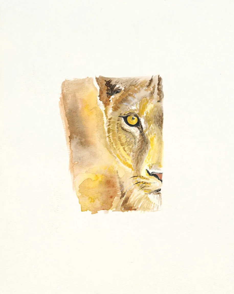 A portion of proceeds from purchasing this original painting will go to a locally-run organization protecting lions in Africa.
